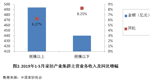 从产业集群方面看,规模以上和规模以下企业均实现了较好增长,其中规下整体略好于规上。今年前5个月,15个家纺产业集群实现主营业务收入934.14亿元,同比增长7.19%;其中规模以上企业同比增长6.27%,规模以下企业收入同比增长8.25%。